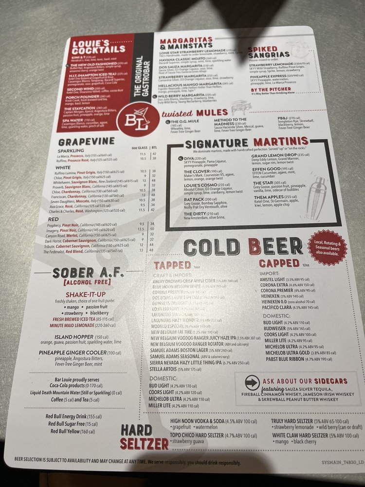 Welcome to Bar Louie - The Shops at Northfield, a vibrant destination that fuses New American cuisine with a lively bar atmosphere. Nestled on Verbena Street in Denver, this establishment excels in offering diverse menu options that cater to all tastes. The highlight? Their craft burgers—like the All Nighter, adorned with spicy candied bacon and a sunny egg—are incredibly satisfying and perfectly cooked. For a casual appetizer, the Bone-In Wings are not to be missed, with flavors ranging from Garlic Parmesan to Buffalo.